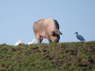 After last week's successful first trip to Frodsham Marsh I thought I would revisit to see what else I could find. Again the weather was good with clear skies. This time I started by walking around No.6 tank where there were large numbers of Black-tailed Godwit feeding in amongst the Teal and Wigeon. Overhead Pink-footed Geese and Lapwings constantly moved around in flocks. Back down to Lordship Lane I found the flock of 17 Whooper Swans standing in the field and at one point they took off and did a fly around. Other birds of interest were a male Stonechat and some Redwings and Fieldfares in the bushes. Moving on to Ince Marshes proved successful this time with 2 Cattle Egrets in amongst the Little Egrets feeding with the impressively sized pigs.